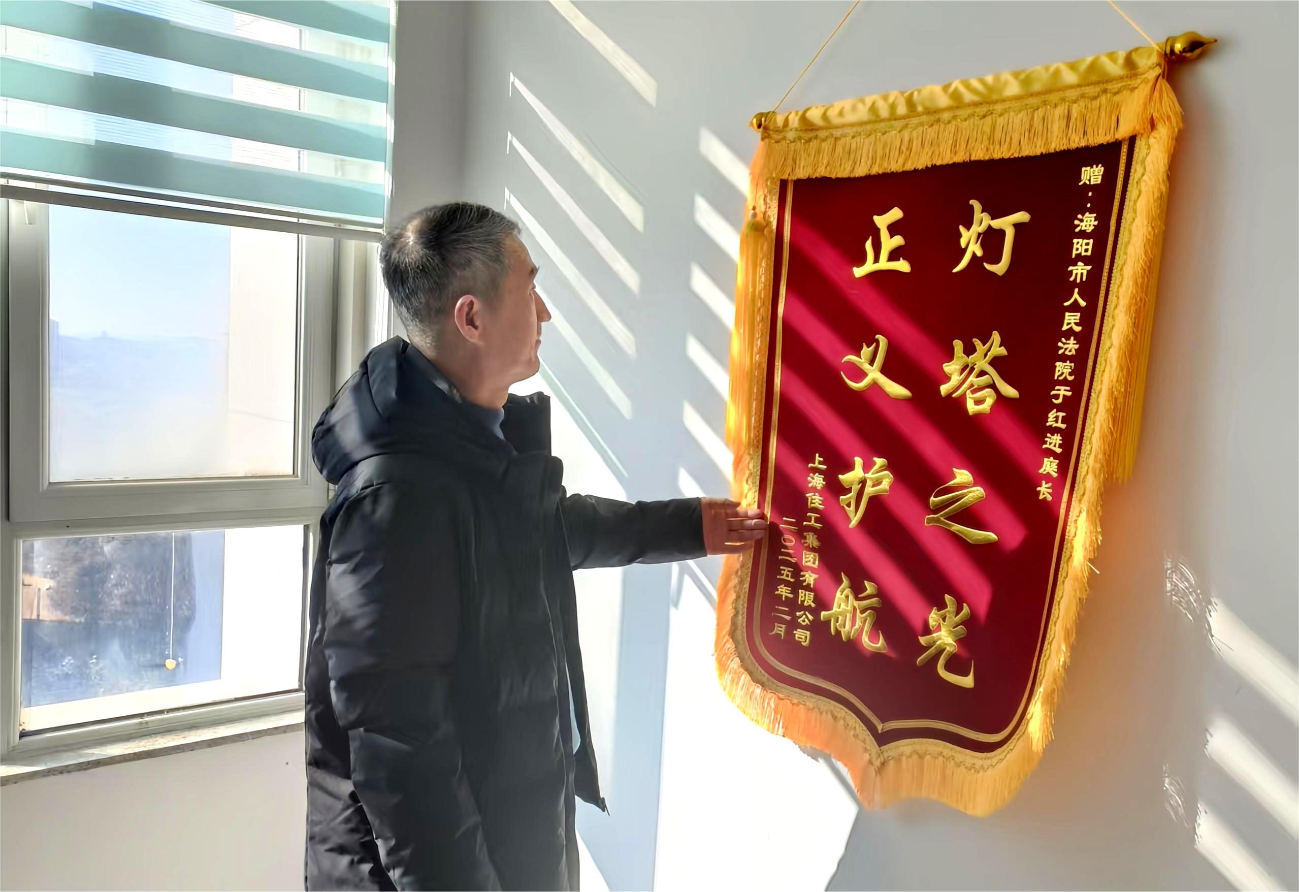 2月12日是正月十五元宵節(jié),上午10時(shí),陽(yáng)光很暖,正正地灑落在山東省海陽(yáng)市人民法院民一庭辦公室的那面錦旗上,庭長(zhǎng)于洪進(jìn)合上卷宗,看著剛剛郵寄來(lái)寫有“燈塔之光 正義護(hù)航”字樣的錦旗,思緒也跟著回到了年前的臘月二十七。