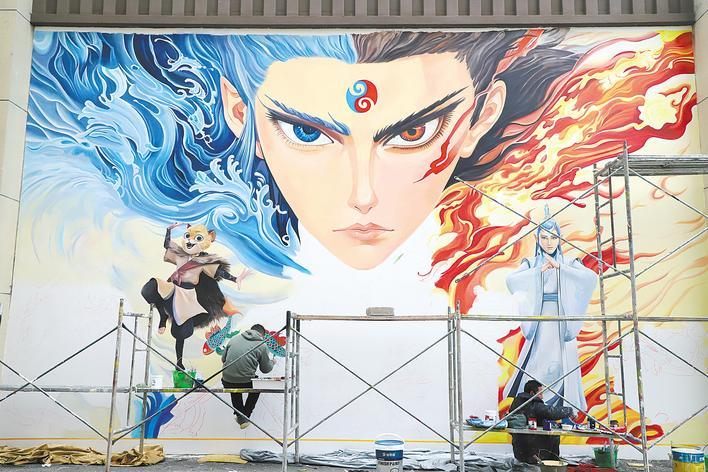 “哪吒”墻繪火了