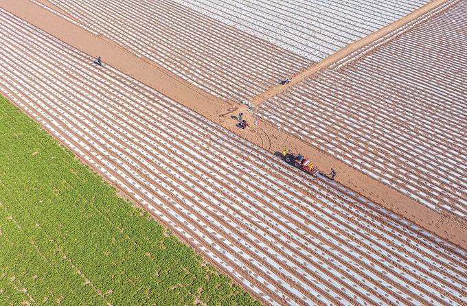 泗洪縣雙溝鎮(zhèn)雪三村花生種植基地機械化春耕場景。張連華 攝