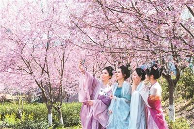 在四川省成都市舉辦的“花朝霓裳·錦繡春行”春日文旅活動上,市民游客穿著漢服踏青賞花,沉浸式體驗非遺市集、中醫(yī)藥文化;上海靜安區(qū)大寧公園以“花朝春時,香郁良辰”為主題,以郁金香、櫻花、海棠、白玉蘭的天然花期作序,借十二花神華服巡游,展示古風國韻;湖南長沙在世界之窗建造百畝牡丹花海,將電視劇《國色芳華》從熒屏搬到現(xiàn)實,人們紛紛身著唐風服飾打卡拍照;位于湖北武漢的東湖風景區(qū)推出了水陸賞櫻游線,游客身著各式傳統(tǒng)服飾,沿著《楚辭》里的滄浪亭、行吟閣體驗荊楚春意。