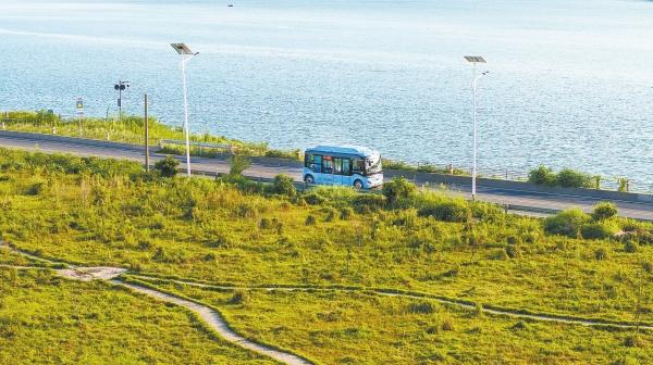 長(zhǎng)沙市天心區(qū),一輛鄉(xiāng)村公交車(chē)行駛在湘江風(fēng)光帶。(資料照片)記者 辜鵬博 攝