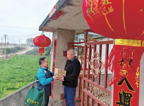 投遞員莫富元為老鄉(xiāng)投遞包裹。韓靜樺 攝