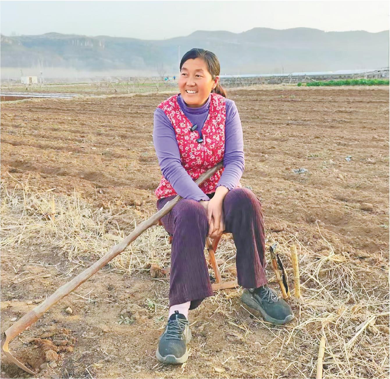 3月23日,呂玉霞在蒙陰縣田間接受采訪。記者 張煥辰 報(bào)道