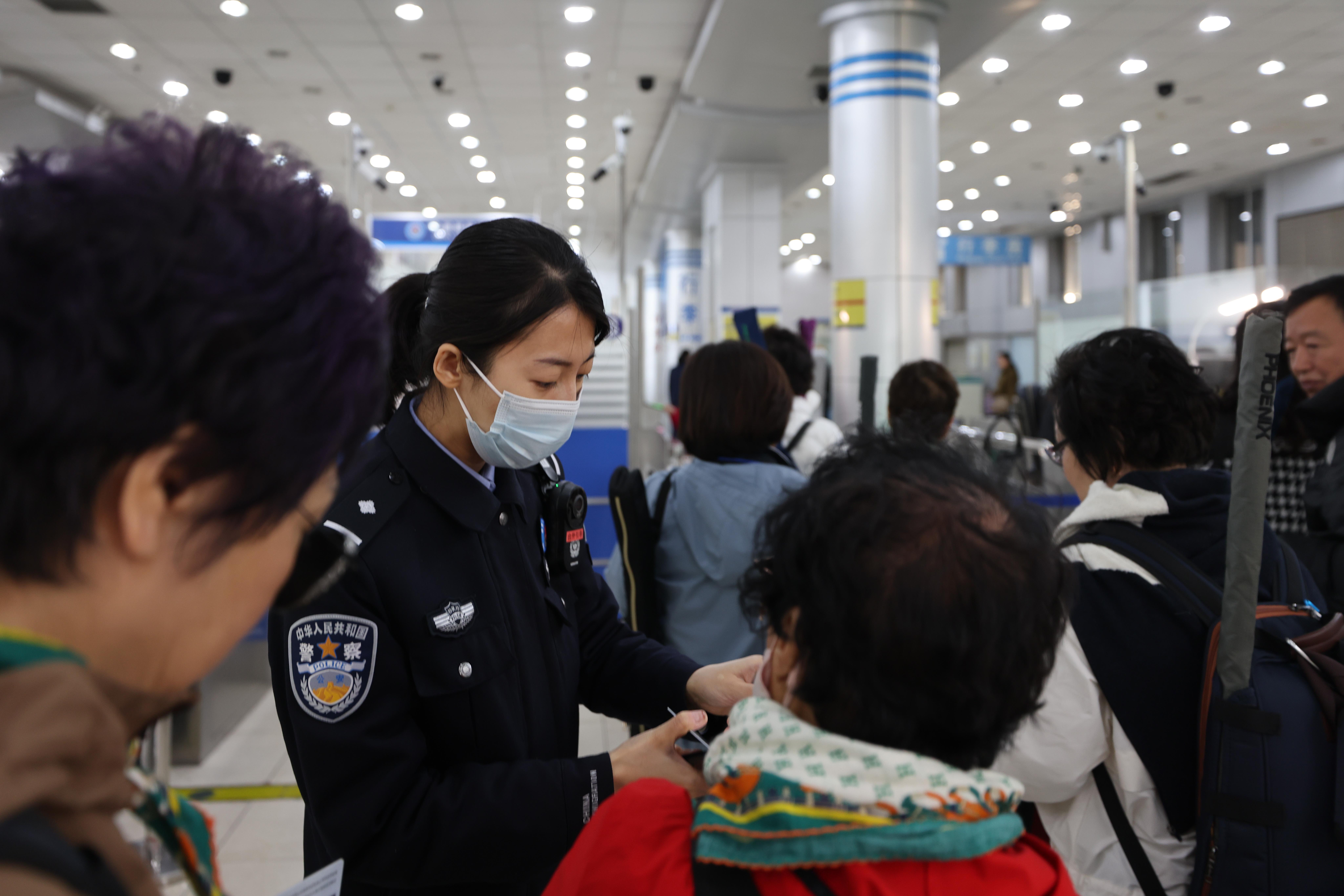 “為全力做好旅行團(tuán)通關(guān)保障工作,我們邊檢機(jī)關(guān)主動(dòng)靠前服務(wù),第一時(shí)間與口岸聯(lián)檢單位、船方及旅行社進(jìn)行通聯(lián),提前掌握團(tuán)隊(duì)人員信息,協(xié)調(diào)旅行社通過整團(tuán)分組、多批次、不間斷的方式,組織旅行團(tuán)成員分批分時(shí)抵達(dá)口岸通關(guān)現(xiàn)場,確保口岸秩序井然。同時(shí)增派前臺(tái)查驗(yàn)警力,開足查驗(yàn)通道,選派精通韓語的民警靠前服務(wù),解決韓國旅客語言溝通不暢、地理位置不熟、政策法規(guī)不清等難題,縮短旅客通關(guān)時(shí)長,確保旅客高效快捷通關(guān)?!笔瘝u邊檢站執(zhí)勤一隊(duì)教導(dǎo)員慕楠說。