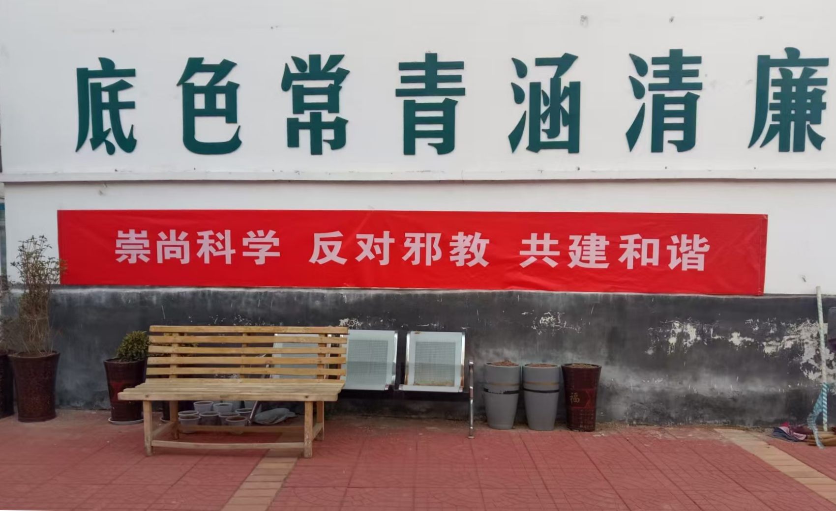 在村廣場等人流量較大的場所,綜治辦工作人員和派出所民警懸掛反邪宣傳橫幅,并向過往村民發(fā)放宣傳手冊(cè),講解邪教的危害與防范措施。