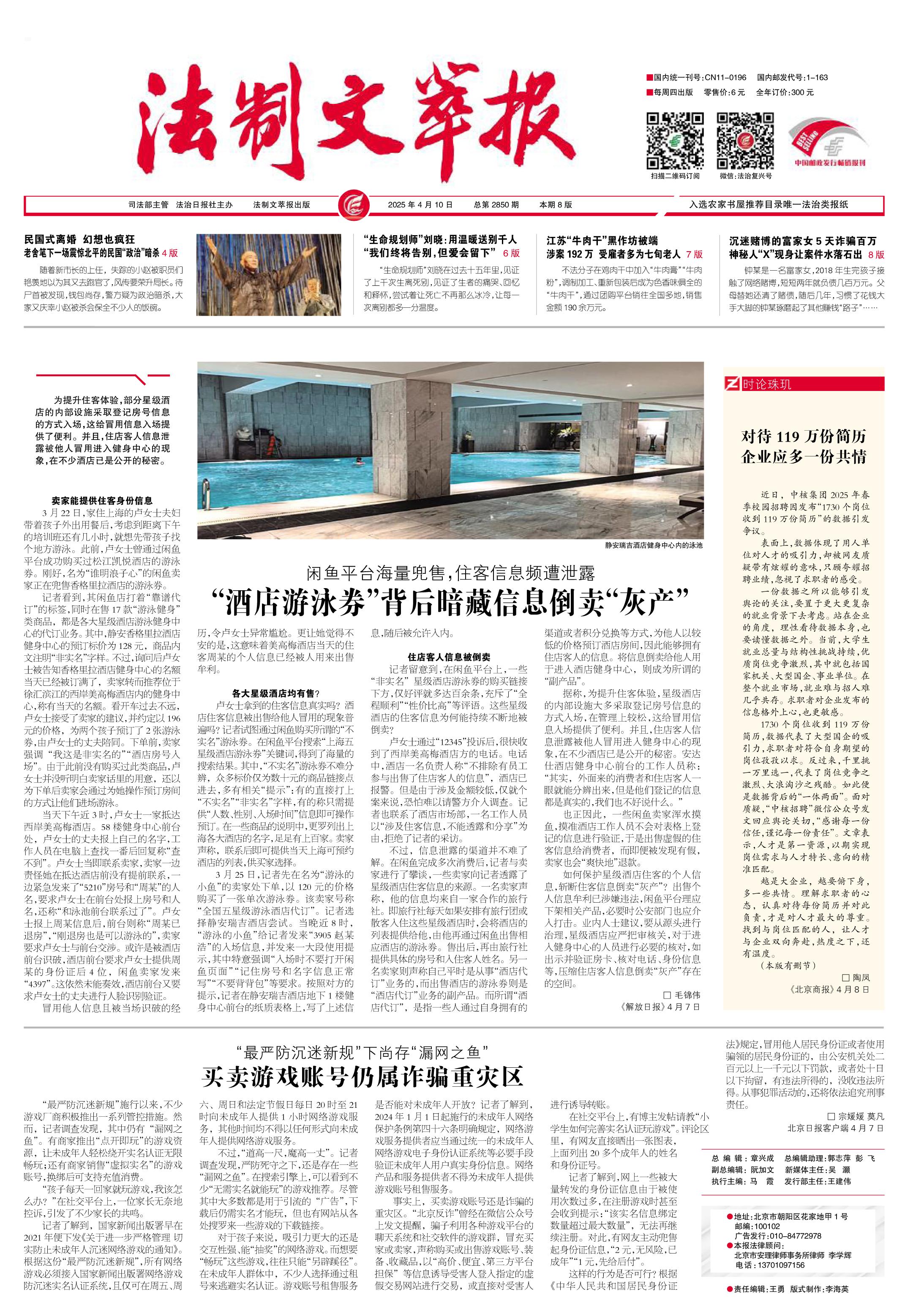 2025年4月10日《法制文萃報》總第2850期1版