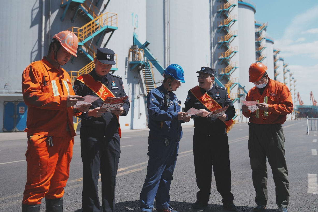 4月14日,在第十個(gè)全民國(guó)家安全教育日到來之際,山東出入境邊防檢查總站董家口邊檢站組織民警深入港區(qū)碼頭一線,將國(guó)家安全法治理念送到口岸從業(yè)人員身邊,推動(dòng)“大安全觀”深入人心。
