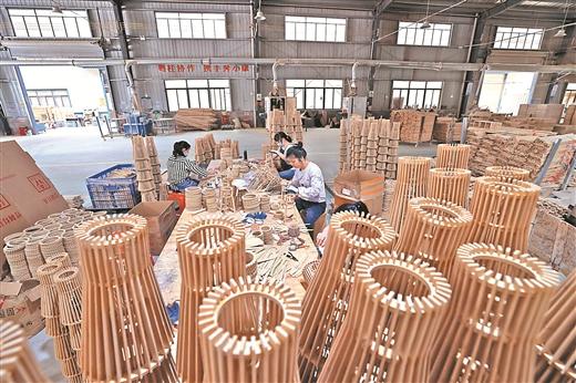 融安竹木等資源十分豐富,如何讓優(yōu)勢資源更優(yōu)?融嘉公司利用當?shù)刂褡印酌⒉?、杉木皮等原材料,加工成竹籬笆、原生態(tài)圍欄、燈罩、置物架等工藝產(chǎn)品。產(chǎn)品由天然環(huán)保材質(zhì)生產(chǎn),且設(shè)計獨特,深受國內(nèi)外市場青睞,產(chǎn)品遠銷海外30多個國家和地區(qū)。