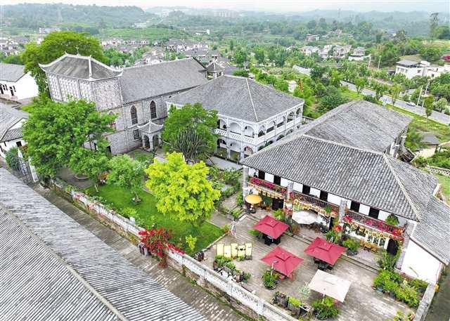 5月7日,九龍坡區(qū)銅罐驛鎮(zhèn)英雄灣村,修繕保護后的文物古跡里開設起了咖啡店。記者 張錦輝 攝
