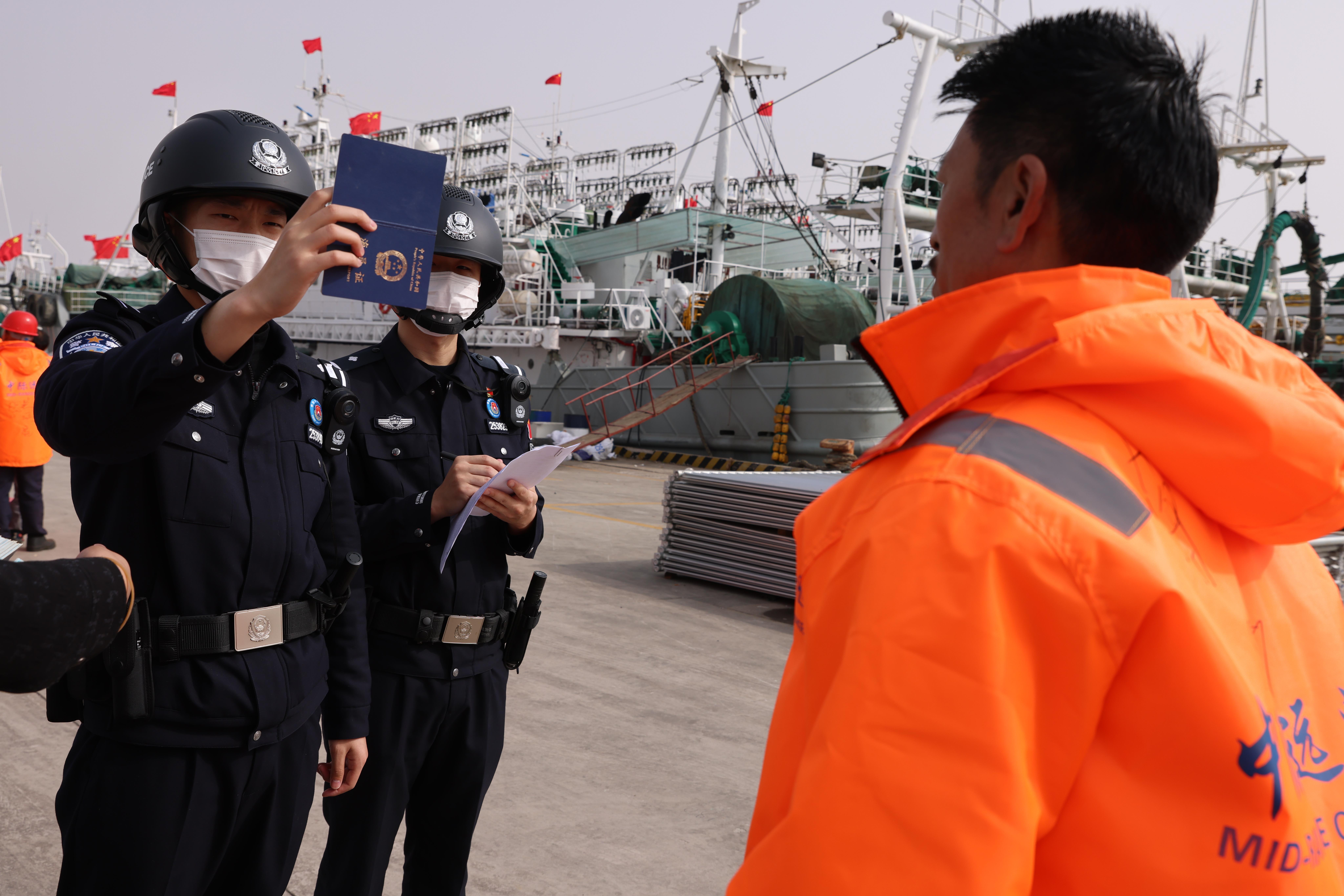 5月20日,遠(yuǎn)洋漁船“金祥11”“金祥12”輪入境緩緩?fù)?吭诤3蓾O港,執(zhí)勤民警第一時間抵達(dá)現(xiàn)場快速為其辦理通關(guān)手續(xù)?!斑厵z部門的高效服務(wù)讓我們十分安心,能夠確保捕撈回來的海鮮能第一時間入庫,保證了品質(zhì),為我們節(jié)省了大量時間和成本。”船舶代理向彥達(dá)激動地說道。