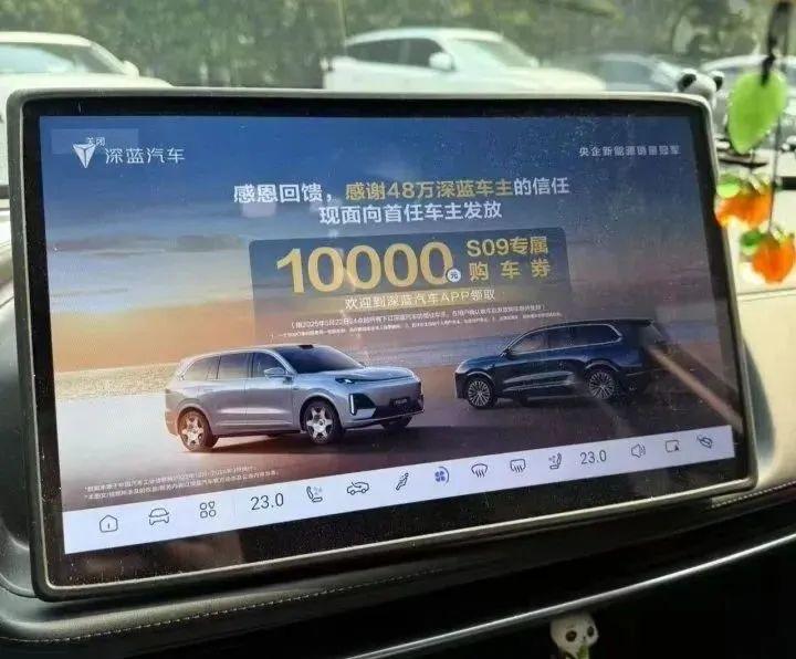 日前,多位深藍(lán)汽車車主公開吐槽稱,深藍(lán)汽車在沒經(jīng)過車主同意的情況下在汽車中控大屏幕投放廣告。廣告顯示“感謝48萬深藍(lán)車主的信任,現(xiàn)面向首任車主發(fā)放10000元專屬購(gòu)車券”。