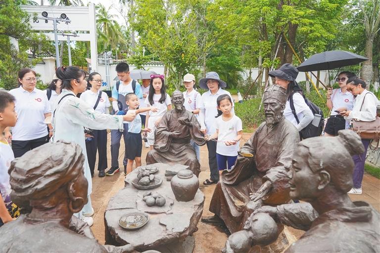 7月7日,親子游客在游覽儋州東坡書院。記者 陳元才 攝