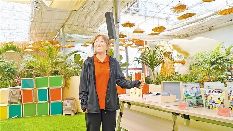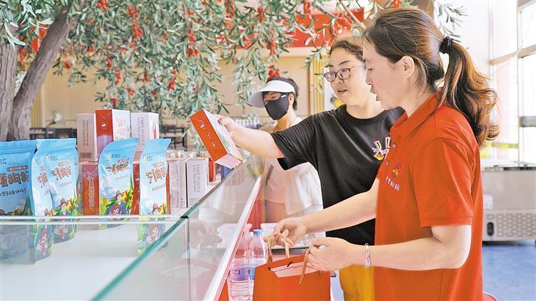 大學生李文迪為游客推介枸杞產(chǎn)品。