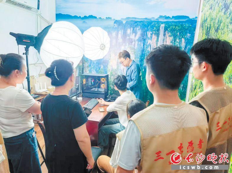 湖南三一工業(yè)職業(yè)技術(shù)學(xué)院“三川星火”志愿服務(wù)團(tuán)邀請(qǐng)村民觀摩并現(xiàn)場(chǎng)指導(dǎo)“直播帶貨”。