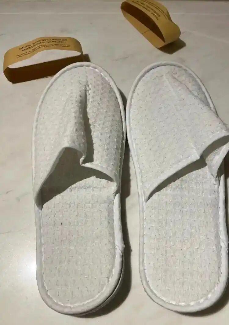 據(jù)了解,該酒店房間日常均價(jià)超過700元每天,而在捆綁拖鞋的紙帶上只提到“為防滑倒,請勿將拖鞋穿入浴室或者公共區(qū)域”。對此,涉事酒店負(fù)責(zé)人承認(rèn),酒店的確未提前告知拖鞋為循環(huán)使用。