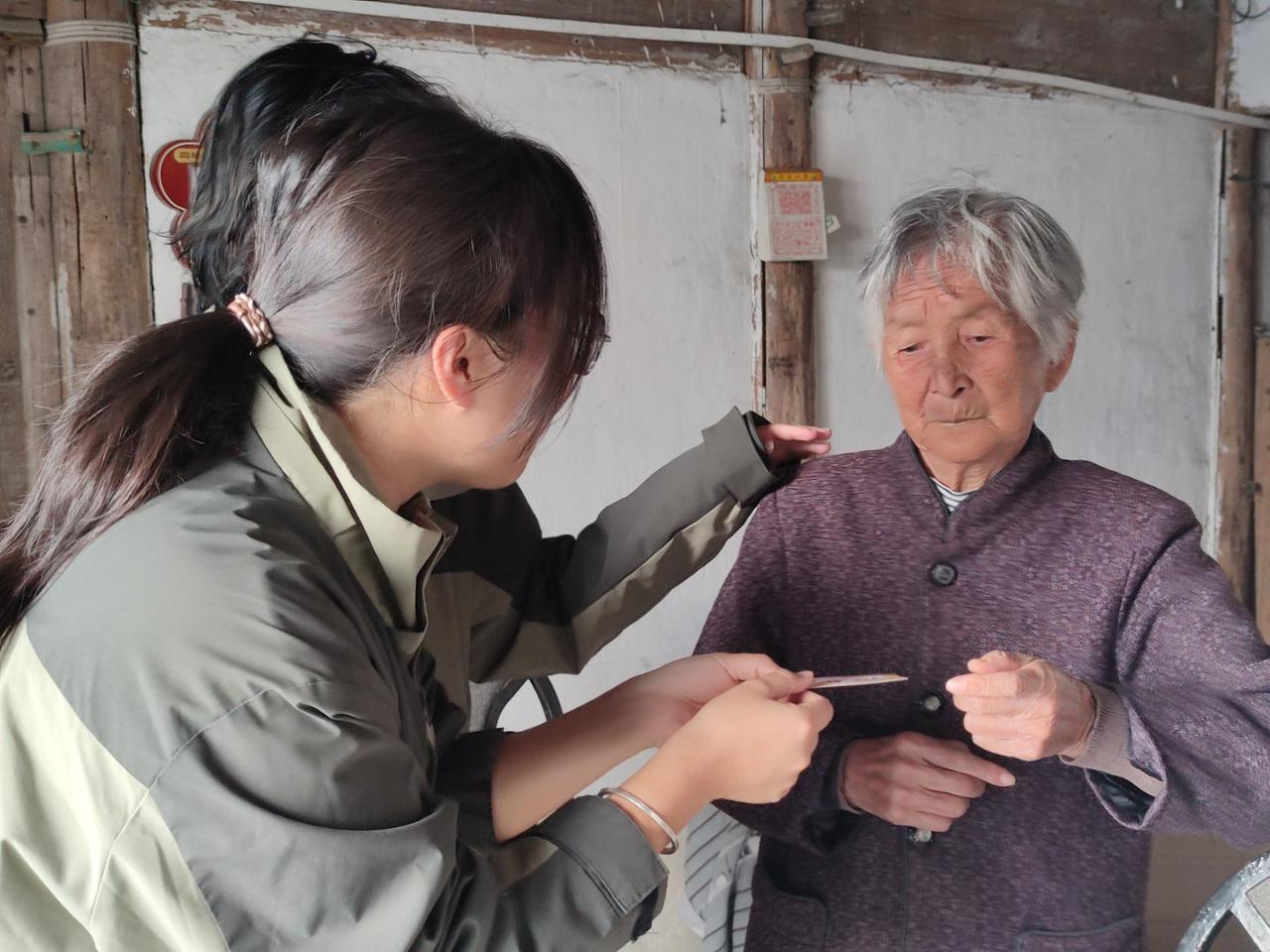 “守望時光里”海島支老公益項目兩名主理人都考取了養(yǎng)老護理員證書,并經(jīng)過健康體檢業(yè)務(wù)培訓(xùn),他們每月要上門為村里所有老人做一次血糖、血壓等基礎(chǔ)健康檢查。