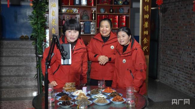 譚新萍和“巾幗直播團”直播帶貨(央廣網(wǎng)記者 胡斐 攝)