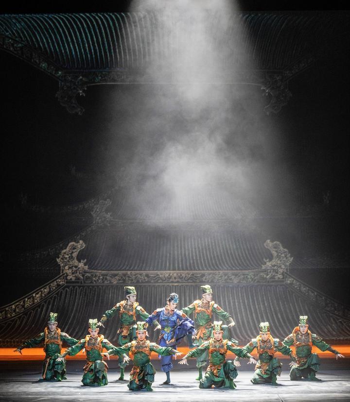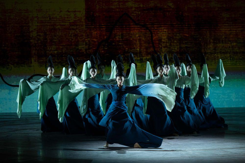 這是舞蹈詩劇《只此青綠》的演出劇照(2024年7月18日攝)。《只此青綠》采用平行空間的敘事方式,從故宮博物院青年研究員的“展卷人”視角出發(fā),講述北宋著名畫家王希孟創(chuàng)作《千里江山圖》的故事。該劇連續(xù)3年穩(wěn)居中國(guó)舞劇票房榜首,全國(guó)巡演超800場(chǎng),赴多個(gè)國(guó)家和地區(qū)演出50余場(chǎng),成為傳統(tǒng)文化創(chuàng)新表達(dá)、中國(guó)藝術(shù)國(guó)際表達(dá)的典范之作。