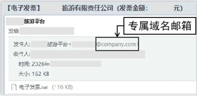 ——標(biāo)題引誘+緊迫感逼單。歲末年初報銷忙、賬務(wù)急,境外攻擊者抓住結(jié)算封賬的時間點,偽裝成電信運營商、電商平臺或旅游平臺客服,以“收件人姓名+電子發(fā)票”為主題構(gòu)造釣魚郵件。其中郵件正文中還會特別強調(diào)“逾期作廢”“發(fā)票有誤需重開”等字樣制造緊迫感,降低警惕性,畢竟在不少人的潛意識里“一張發(fā)票能有多大危害”?但真正的陷阱就隱藏在附件或鏈接中,看似是一份普通的發(fā)票文件,實則是境外黑客組織精心偽裝的木馬程序。