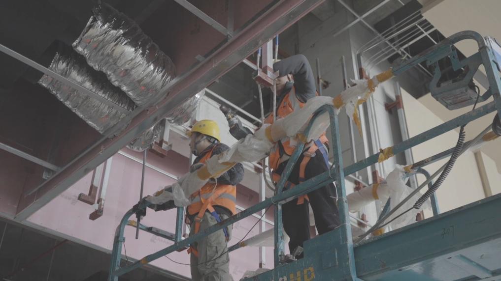 在武漢市同濟(jì)醫(yī)院國(guó)家醫(yī)學(xué)中心轉(zhuǎn)化醫(yī)學(xué)大樓項(xiàng)目現(xiàn)場(chǎng),項(xiàng)目管理人員正月初六已全部返崗。
