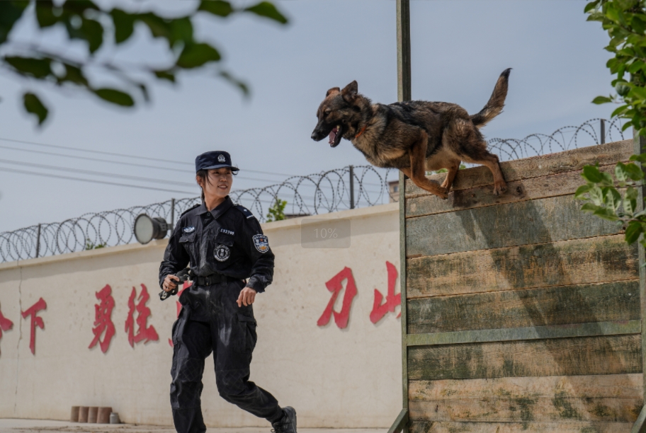 圖為訓(xùn)犬員正在對(duì)警犬開展訓(xùn)練