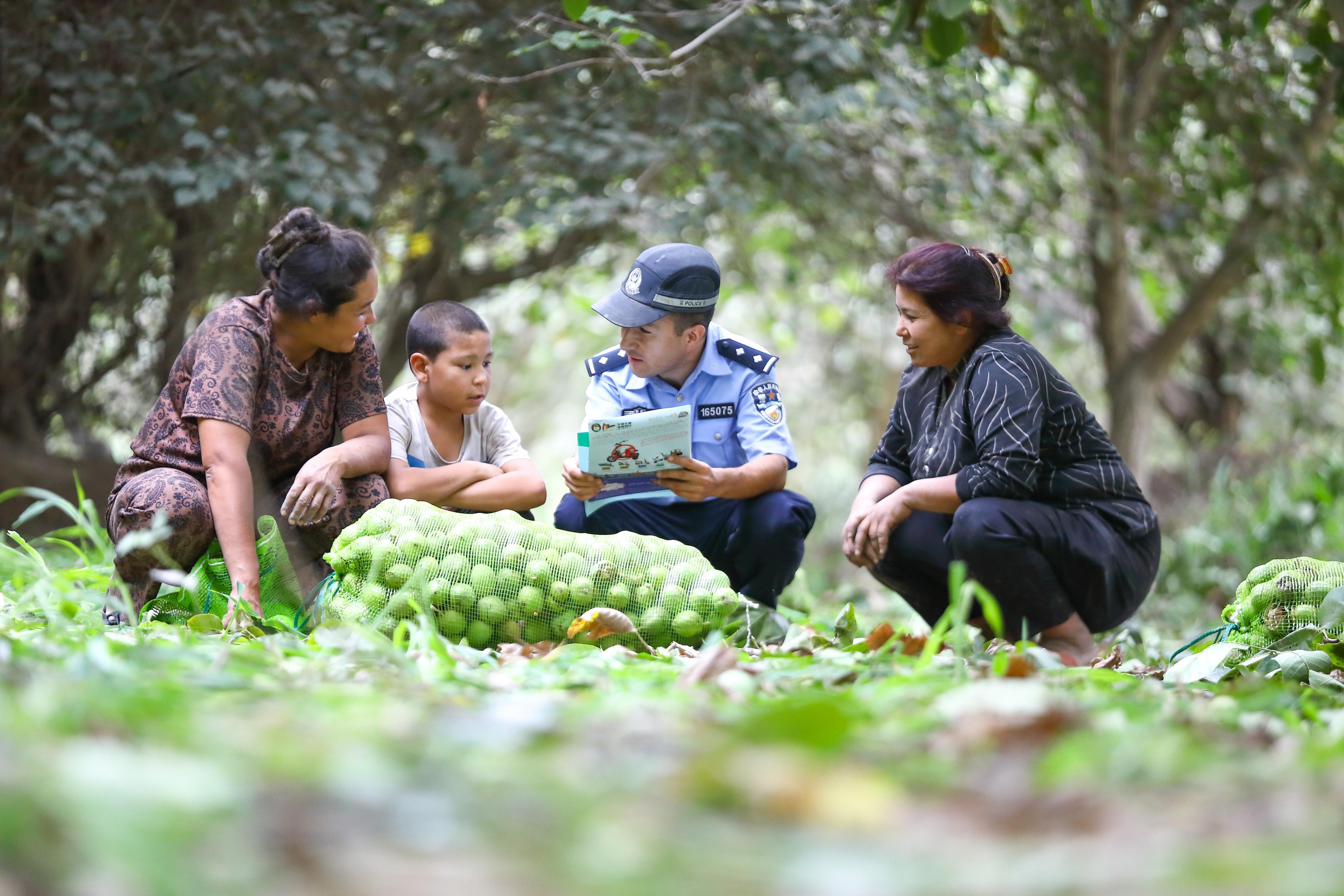8月18日,在新疆葉城縣依力克其鄉(xiāng)的核桃園里,陣陣爽朗的招呼聲打破了田間的寧靜。葉城縣公安局依力克其鄉(xiāng)派出所組建的助農(nóng)小分隊(duì)深入轄區(qū)核桃園,一邊幫群眾采收核桃,一邊開展普法宣傳活動(dòng),用貼心服務(wù)獲得群眾的紛紛點(diǎn)贊,成為秋日里一道溫暖的風(fēng)景線。