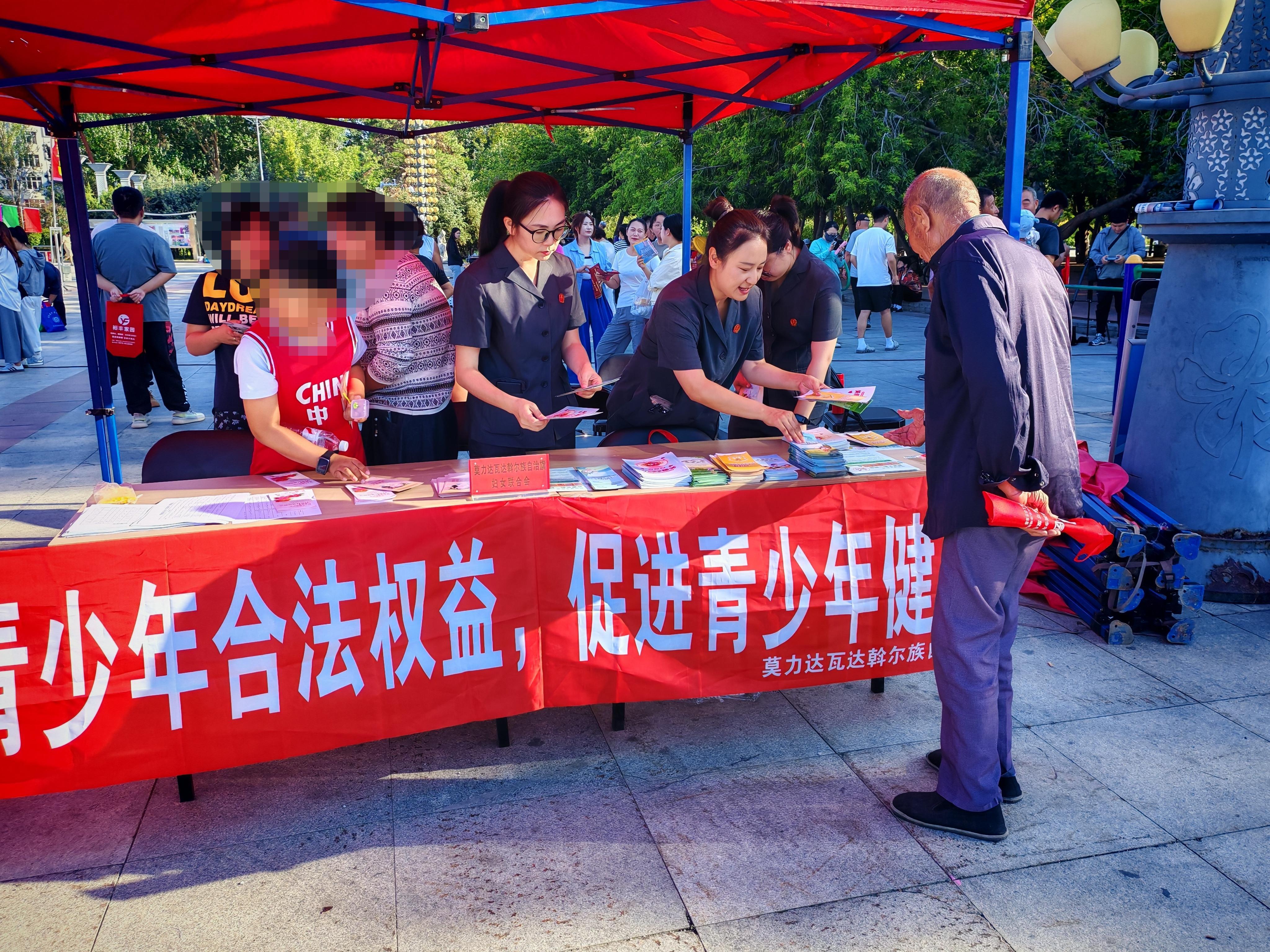 8月20日,內(nèi)蒙古自治區(qū)呼倫貝爾市莫力達瓦達斡爾族自治旗人民法院未成年人審判團隊走進依蘭廣場,開展未成年人保護法普法宣傳,讓法治的種子在孩子們心中“生根發(fā)芽”。