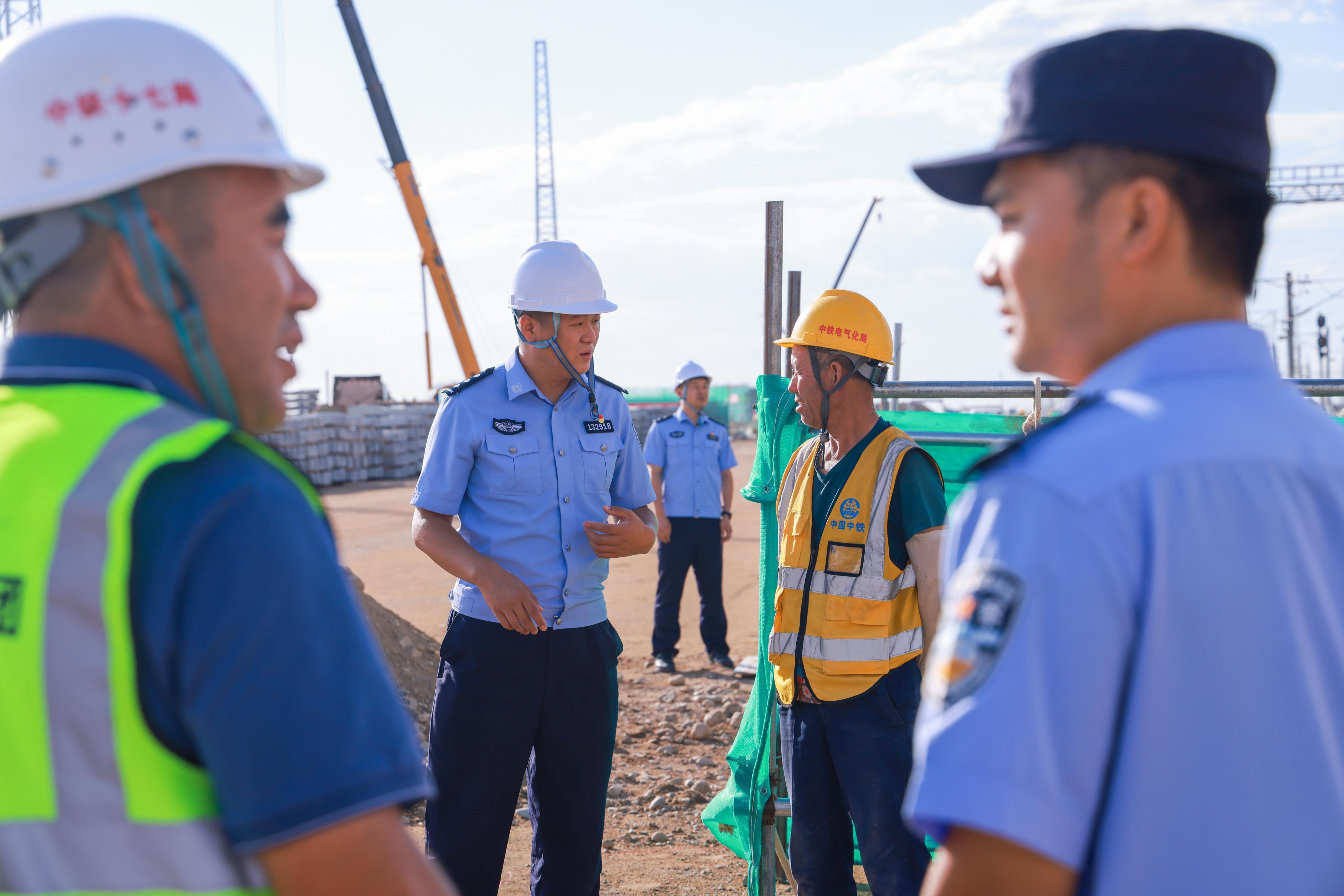 圖為8月20日,哈密公安處刑偵支隊民警在哈密東站施工現場開展“沉浸式”普法宣傳和安全檢查。