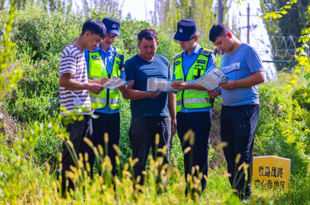 近日,新疆喀什地區(qū)鐵路線路周邊無(wú)花果、葡萄相繼迎來(lái)“豐收季”,烏魯木齊鐵路公安局喀什公安處組織民輔警走進(jìn)田間地頭、林圃果園,開(kāi)展“鐵警護(hù)豐收 助農(nóng)話安全”普法宣傳活動(dòng),通過(guò)警用車(chē)載喇叭播放鐵路安全知識(shí)、開(kāi)展矛盾糾紛排查化解工作、現(xiàn)場(chǎng)普法答疑等方式,結(jié)合典型案例,向群眾普及鐵路安全知識(shí),講解電信網(wǎng)絡(luò)詐騙類(lèi)型及防范技巧,為“采摘季”增添安全保障,全力守護(hù)群眾“錢(qián)袋子”。