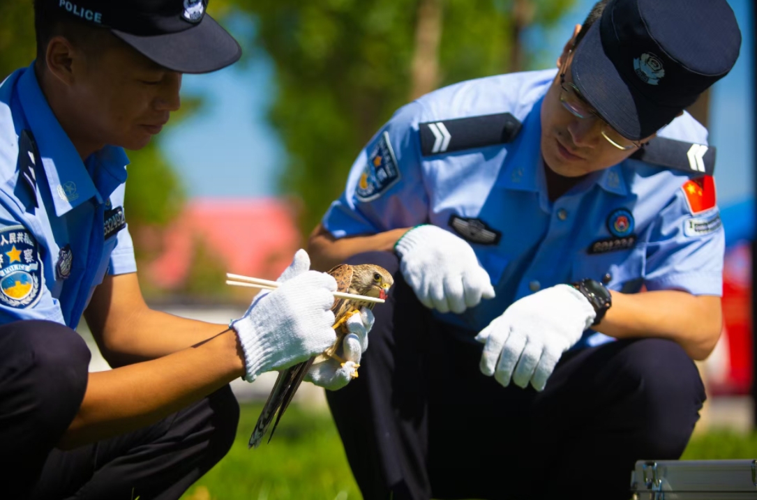 救助部門(mén)工作人員到達(dá)派出所后,確認(rèn)被救助的鳥(niǎo)系國(guó)家二級(jí)保護(hù)動(dòng)物——紅隼,隼科的小型猛禽之一。在工作人員的指導(dǎo)下,民警給紅隼投喂了水和食物。目前,這只紅隼已接受專(zhuān)業(yè)救助,待其恢復(fù)生存能力后將放歸大自然。