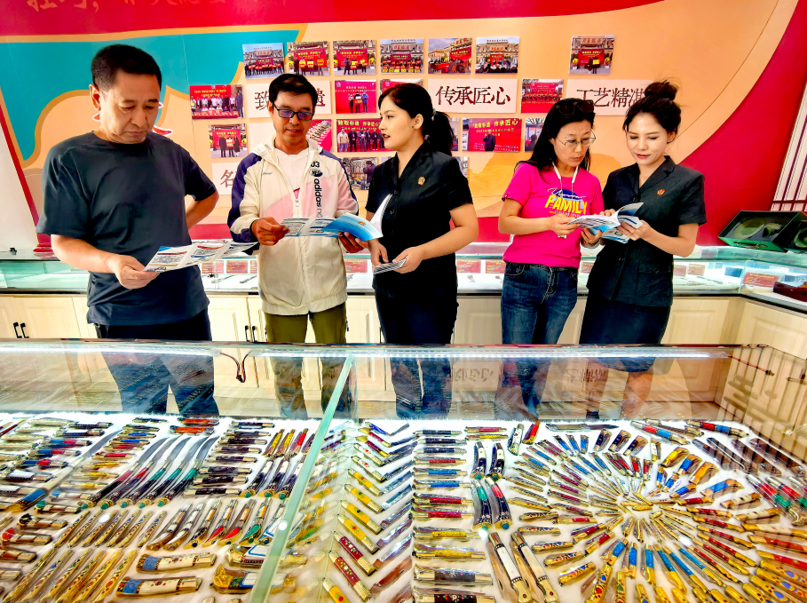 圖為9月17日下午,英吉沙縣法院“旅游景區(qū)法官工作室”工作人員在芒辛鎮(zhèn)小刀村景區(qū)向游客和商家開展普法宣傳活動(dòng)。
