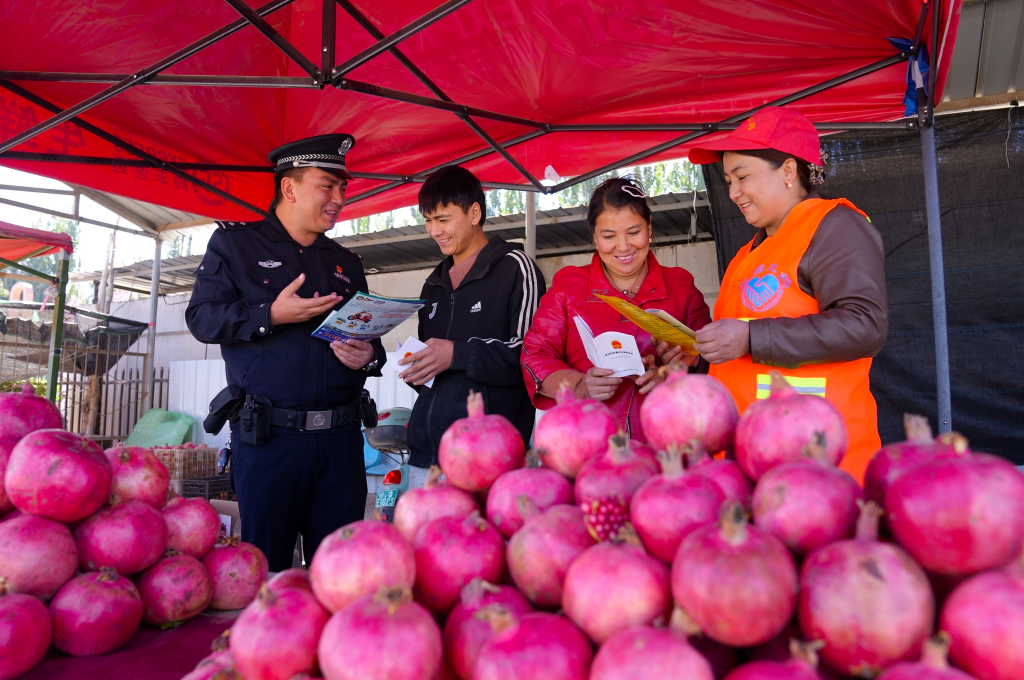 10月12日,新疆維吾爾自治區(qū)葉城縣伯西熱克鎮(zhèn)派出所深入踐行新時(shí)代“楓橋經(jīng)驗(yàn)”,組織“石榴大媽”“石榴義警”等走進(jìn)轄區(qū)石榴園區(qū)、流動(dòng)擺攤路段、合作社及打包點(diǎn)等地,開展常態(tài)化巡邏防控、安全隱患排查、安防普法宣傳和矛盾糾紛調(diào)處工作。民警與義警向群眾講解防盜防騙、交通安全等知識(shí),及時(shí)掌握社情民意,化解潛在風(fēng)險(xiǎn),用實(shí)際行動(dòng)守護(hù)群眾生命財(cái)產(chǎn)安全。