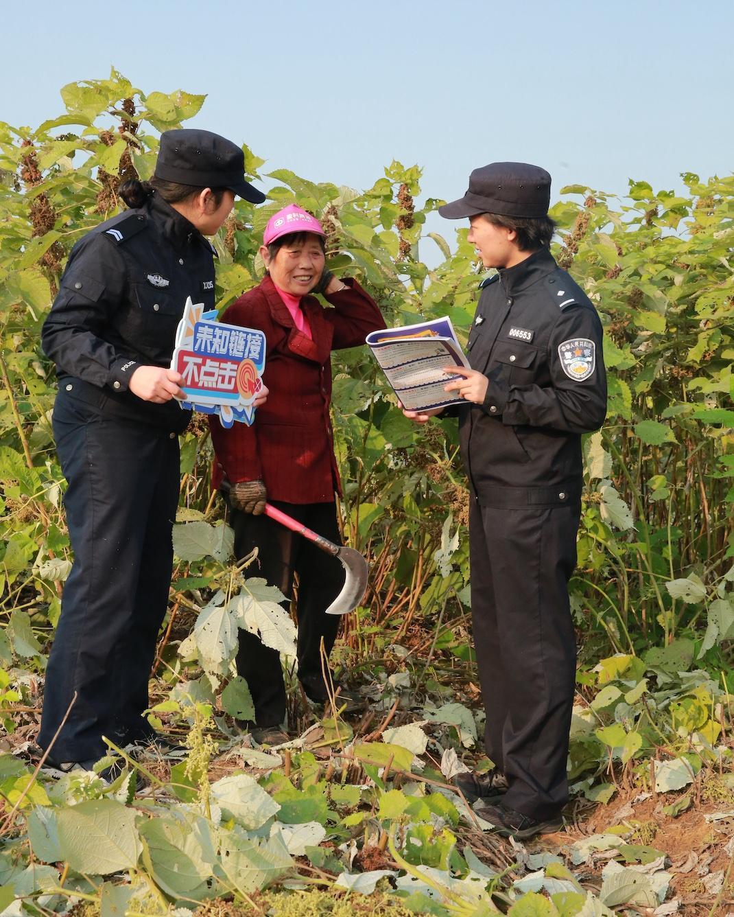 11月18日,湖北省黃石市公安局開發(fā)區(qū)·鐵山區(qū)分局太子派出所民警走進太子鎮(zhèn)朋畈村,以“拉家?!钡姆绞矫琶芗m紛,并向在苧麻地勞作的村民精準宣傳反詐知識。