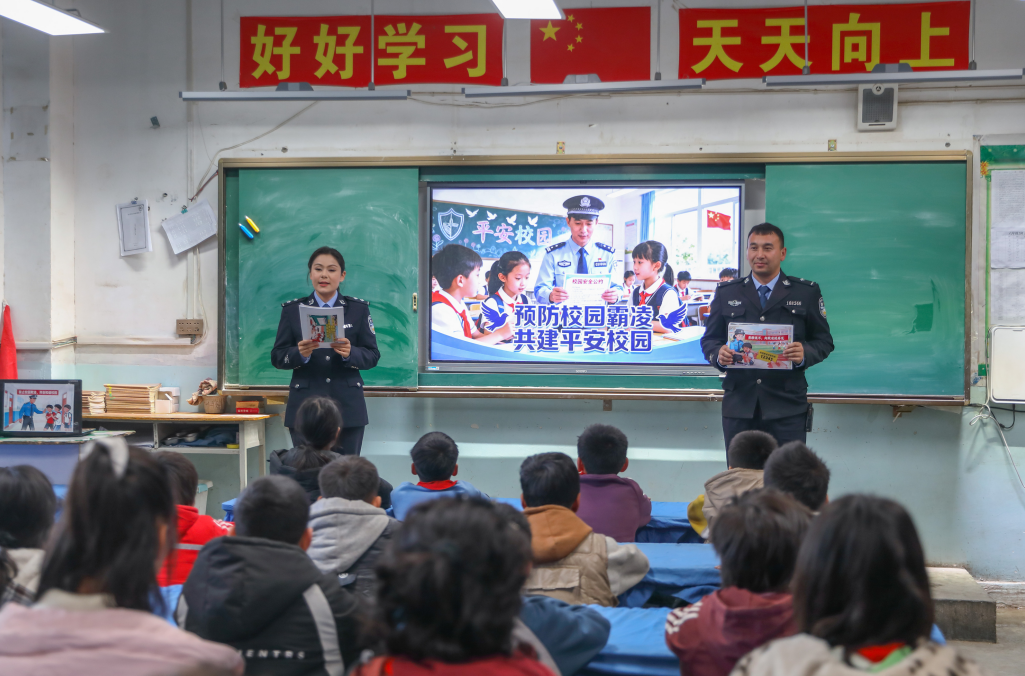 11月20日,新疆維吾爾自治區(qū)葉城縣巴仁鄉(xiāng)派出所民警深入巴仁鄉(xiāng)小學開展法治宣傳活動。民警以案例講解的方式為學生講解預防校園欺凌相關知識,引導學生在日常生活中增強法治意識,提升自我保護能力。