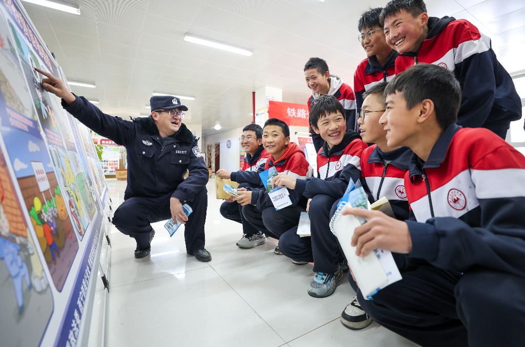 “小朋友們,考考你們,發(fā)現(xiàn)鐵路護(hù)欄網(wǎng)壞了,我們應(yīng)該怎么辦呀?”“打110告訴警察叔叔!”在海東市平安區(qū)小峽中心學(xué)校和西寧市城北區(qū)山川學(xué)校,民警變身親切的“主持人”,通過有獎問答、安全知識小游戲,與同學(xué)們打成一片。學(xué)生們爭先恐后地舉手,在踴躍參與中,將“不上路、不石擊、不擺障、不破壞”的護(hù)路知識牢牢記住。