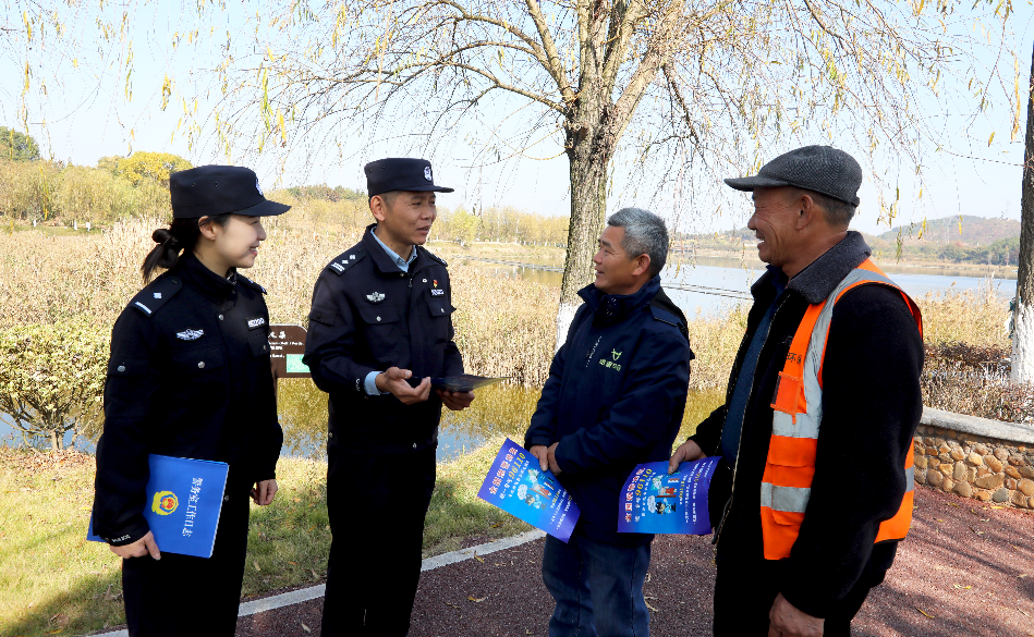 圖為12月22日,民警在分宜縣濕地公園向群眾宣傳反詐知識(shí)。