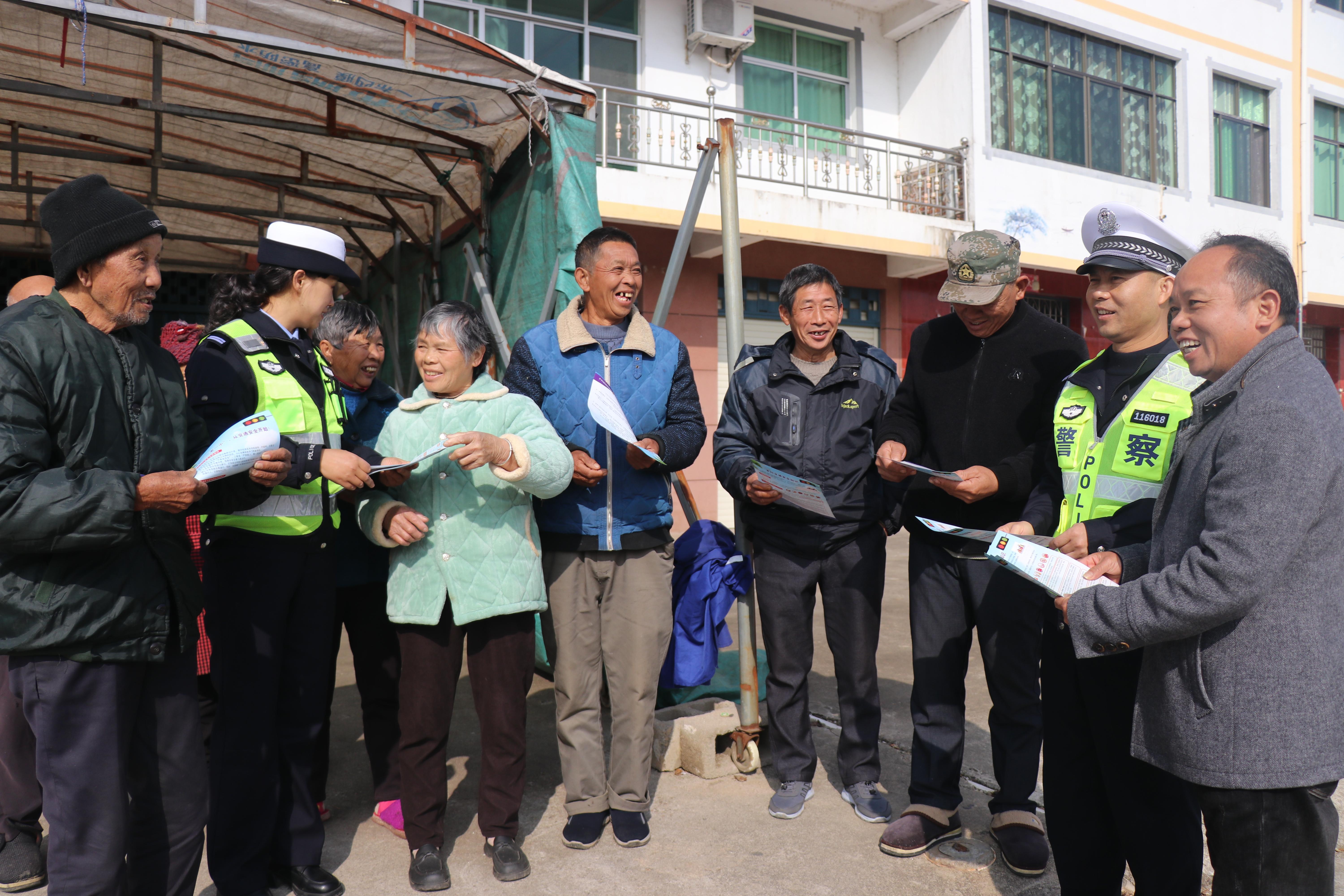 圖為12月26日,民警走進(jìn)白舍鎮(zhèn)茶亭村為老年人宣講交通安全知識(shí)并贈(zèng)送夜間反光標(biāo)志。