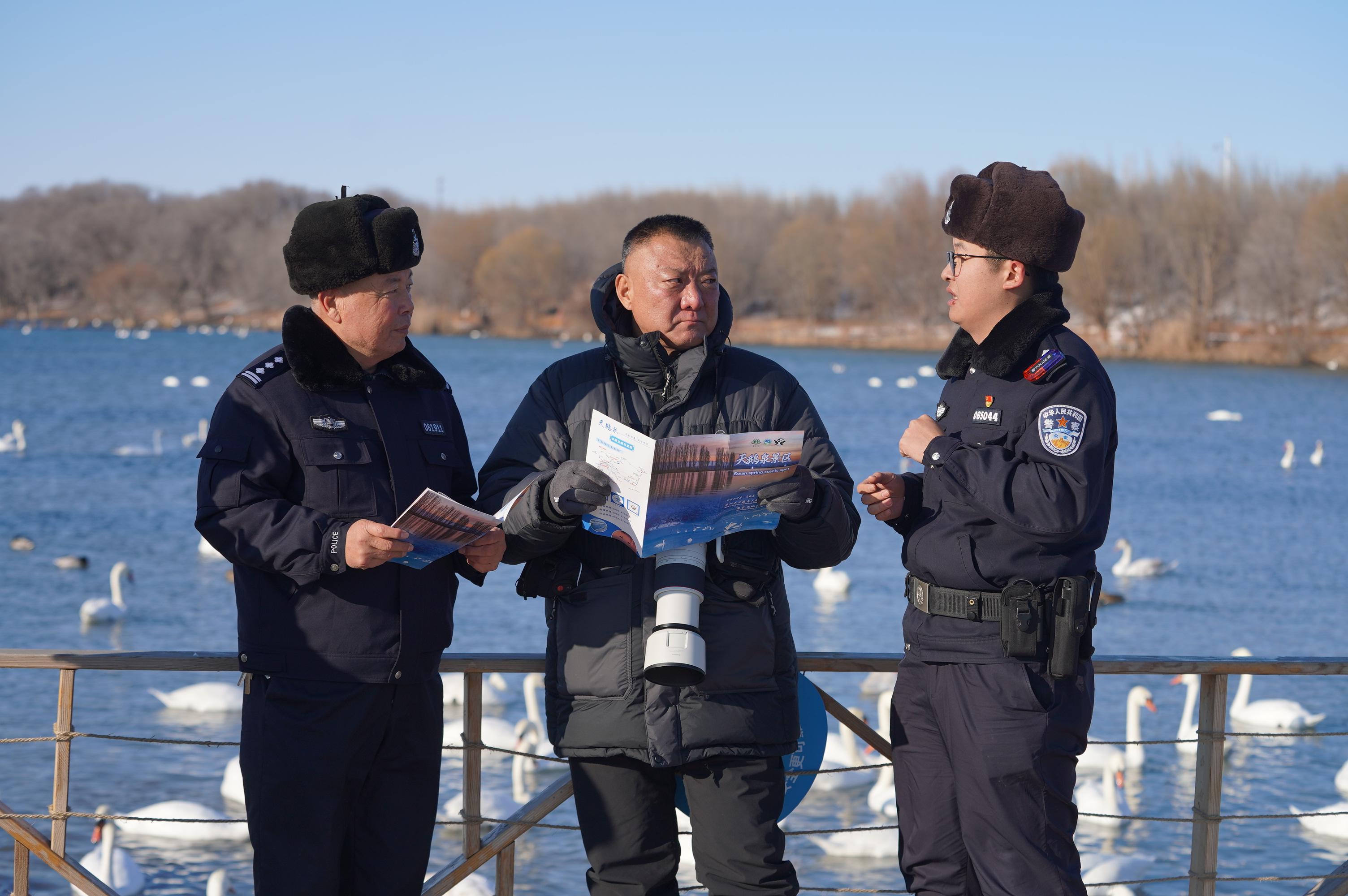“天鵝警護隊”并非單純執(zhí)行警務,日常工作中,隊員們在開展治安巡邏、處理游客求助的同時,格外注重對天鵝等候鳥及其棲息環(huán)境的巡護。勸阻驚擾候鳥行為、撿拾湖區(qū)垃圾、觀察記錄鳥類活動狀況、向游客宣傳生態(tài)保護知識,已成為他們的常規(guī)任務。