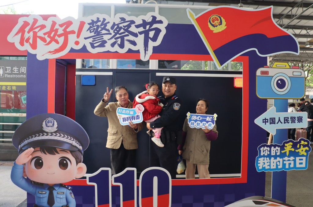 其中,南寧站和南寧東站派出所同步舉辦“警營開放日”,現(xiàn)場設(shè)置了鐵路安全知識宣傳展板,安排了法律咨詢、有獎問答等互動環(huán)節(jié),營造“警民共慶、平安共享”的濃厚氛圍。