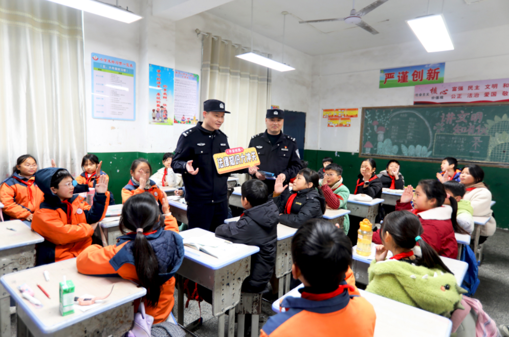 圖為1月22日,民警走進(jìn)楊橋鎮(zhèn)中心學(xué)校向?qū)W生講解寒假安全知識(shí)。