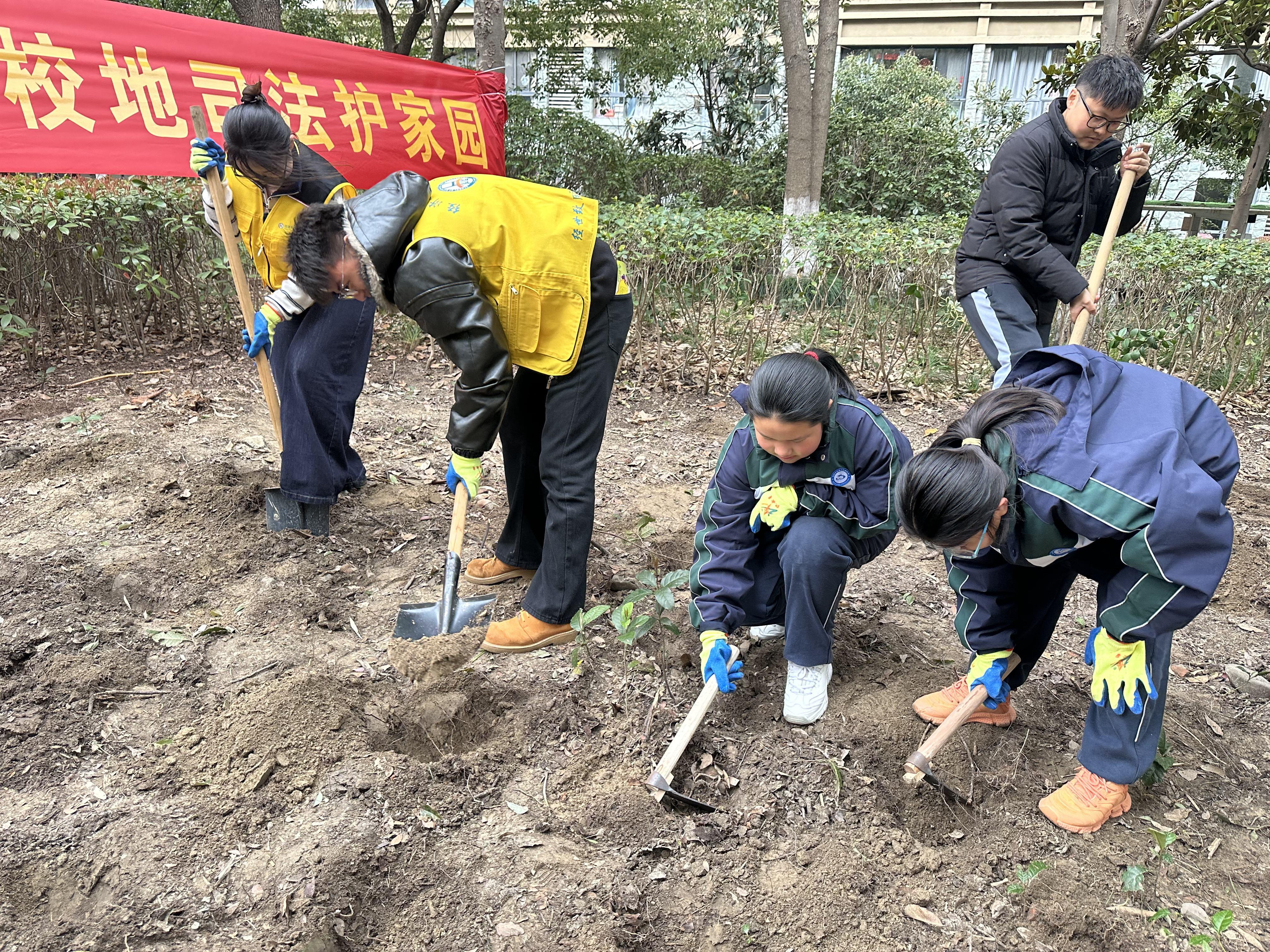 實踐踐行課堂:共植“成長綠林”。在社區(qū)實踐基地中,來自浙江水利水電學(xué)院的大學(xué)生志愿者與新灣轄區(qū)的中小學(xué)生結(jié)對協(xié)作,揮鍬挖坑、扶苗培土、提水澆灌,合力栽下一株株新綠。勞動中,志愿者同步宣講禁種鏟毒和生態(tài)保護知識,將課堂所學(xué)在實踐中傳遞,一株株新栽的樹苗迎風(fēng)挺立,為初春的大地增添勃勃生機。