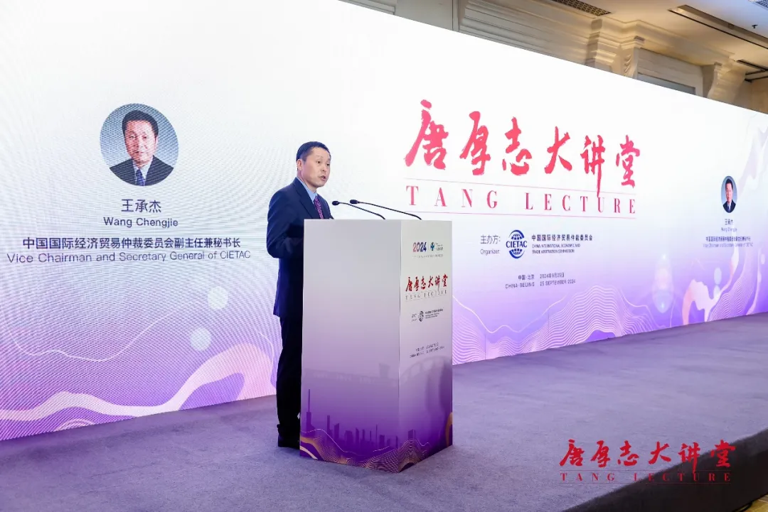 王承杰秘書長在開場致辭中表示,唐厚志大講堂是為了紀(jì)念我國仲裁事業(yè)的重要奠基人和開拓者唐厚志先生而設(shè)立。近年來,黨和國家高度重視并積極推動仲裁事業(yè)發(fā)展。今年7月黨的二十屆三中全會通過的《中共中央關(guān)于進(jìn)一步全面深化改革、推進(jìn)中國式現(xiàn)代化的決定》,更是高度重視、四次提及仲裁,并對健全國際商事仲裁制度、培育國際一流仲裁機(jī)構(gòu)作出專門部署、提出明確要求。唐老多年來倡導(dǎo)、推動我國仲裁事業(yè)發(fā)展的不懈努力和重大貢獻(xiàn)在新時代久久回響。