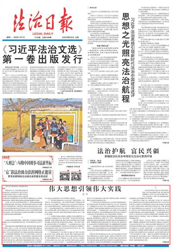 五年來,在習(xí)近平法治思想的科學(xué)指引下,我國法治建設(shè)穩(wěn)步推進(jìn),取得突破性進(jìn)展、歷史性成就,為續(xù)寫經(jīng)濟(jì)快速發(fā)展和社會長期穩(wěn)定兩大奇跡新篇章作出了重要貢獻(xiàn)。我國法治建設(shè)的成就充分證明:習(xí)近平法治思想是順應(yīng)實(shí)現(xiàn)中華民族偉大復(fù)興時(shí)代要求應(yīng)運(yùn)而生的重大理論創(chuàng)新成果,是法治領(lǐng)域堅(jiān)持把馬克思主義基本原理同中國具體實(shí)際相結(jié)合、同中華優(yōu)秀傳統(tǒng)文化相結(jié)合的光輝典范,是引領(lǐng)新時(shí)代全面依法治國的光輝思想旗幟。