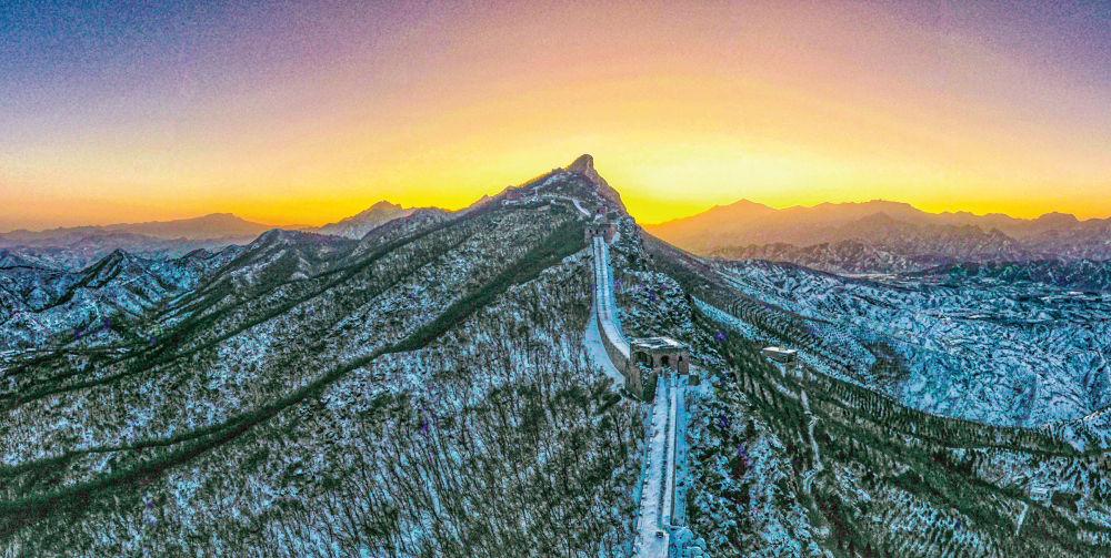 如今已定居武漢的老陳,雖然離開了長城腳下的村落,仍要在每年回家團圓之時,攀登、記錄下這座伴自己成長的長城;來自巴西的柯林斯一家,游覽了廣州、成都、西安等城市后,來到北京想要過一個“地道中國年”,聽說新年登高有“步步高”的意蘊,便決定來爬司馬臺;在這段長城的最高點,五位來自密云區(qū)第二中學的高三學生正在背誦《清平樂·六盤山》,“六盤山上高峰,紅旗漫卷西風。今日長纓在手,何時縛住蒼龍?”言語中滿是青年對未來的憧憬與豪情……
