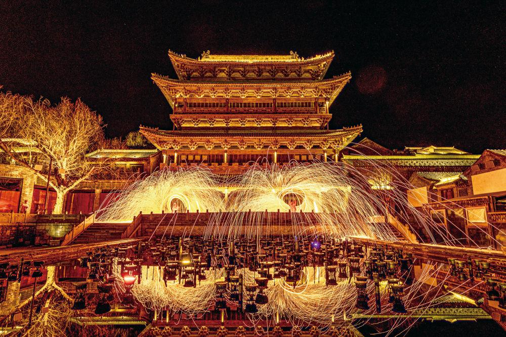 這是古北水鎮(zhèn)中的“風火流星”表演。北京市密云區(qū)供圖