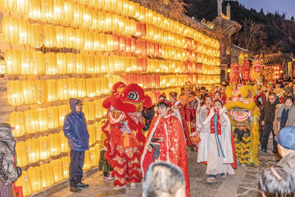 這是古北水鎮(zhèn)中的新春巡游。北京市密云區(qū)供圖