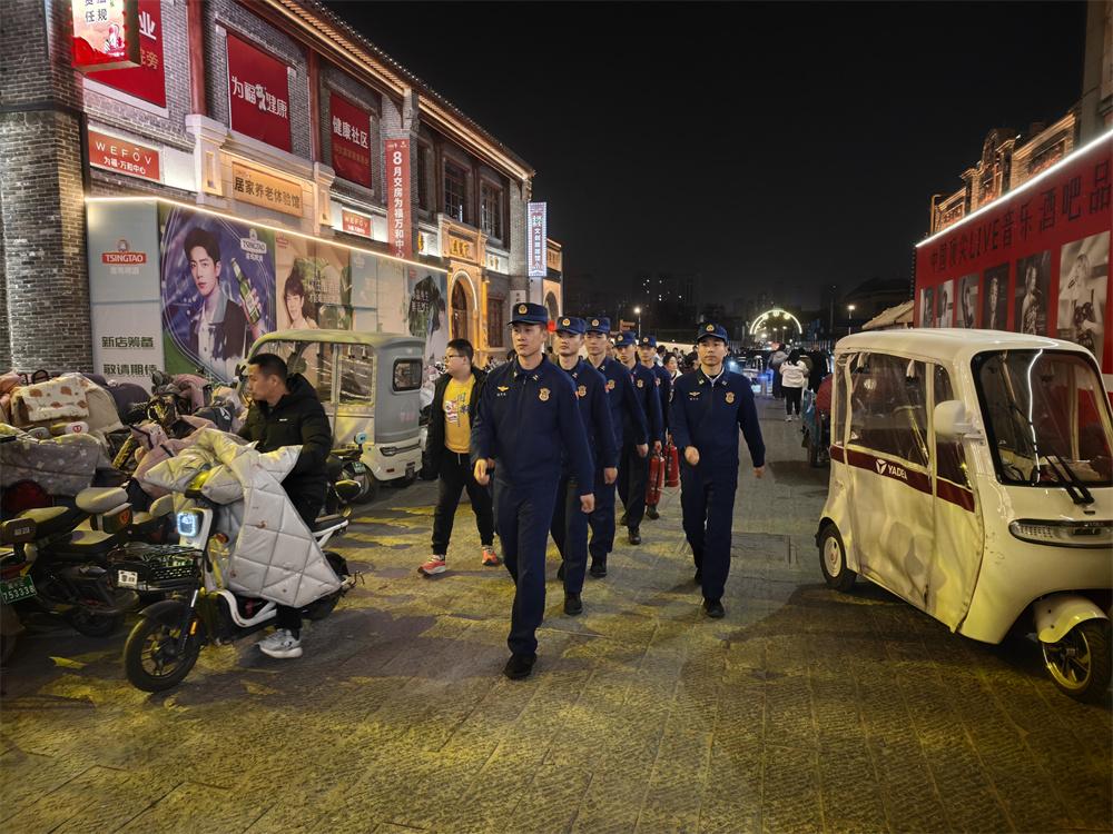 作為站里年齡最大的老班長(zhǎng),張廣濤早已將古城的消防水源位置、最佳停車(chē)位置、疏散路線等熟記于心。今年的除夕夜,他依舊主動(dòng)請(qǐng)纓,帶領(lǐng)戰(zhàn)友前往好南關(guān)執(zhí)勤。人群中,他們一邊沿街巡邏排查安全隱患,一邊用通俗易懂的語(yǔ)言向過(guò)往群眾宣講消防安全知識(shí),用身體力行的堅(jiān)守為古城守歲。