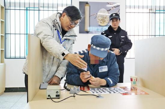 圖為蛋雕非遺代表性傳承人于潔林指導(dǎo)罪犯雕刻。