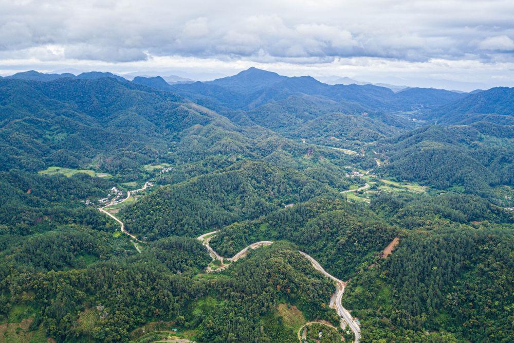這是2025年7月22日在海南省保亭黎族苗族自治縣毛感鄉(xiāng)拍攝的熱帶雨林及蜿蜒其中的環(huán)熱帶雨林國家公園旅游公路(無人機照片)。新華社記者 蒲曉旭 攝