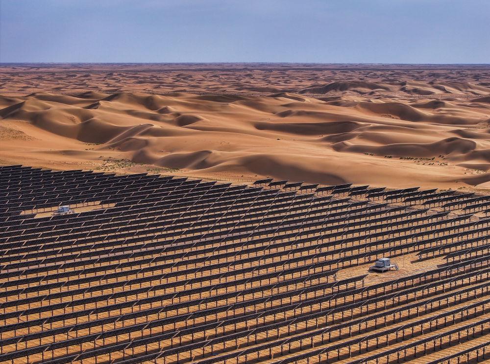 這是2025年6月5日拍攝的位于內(nèi)蒙古巴彥淖爾市磴口縣的烏蘭布和東北部新能源基地100萬千瓦光伏先導(dǎo)工程項目(無人機照片)。該項目地處烏蘭布和沙漠。新華社記者 連振 攝